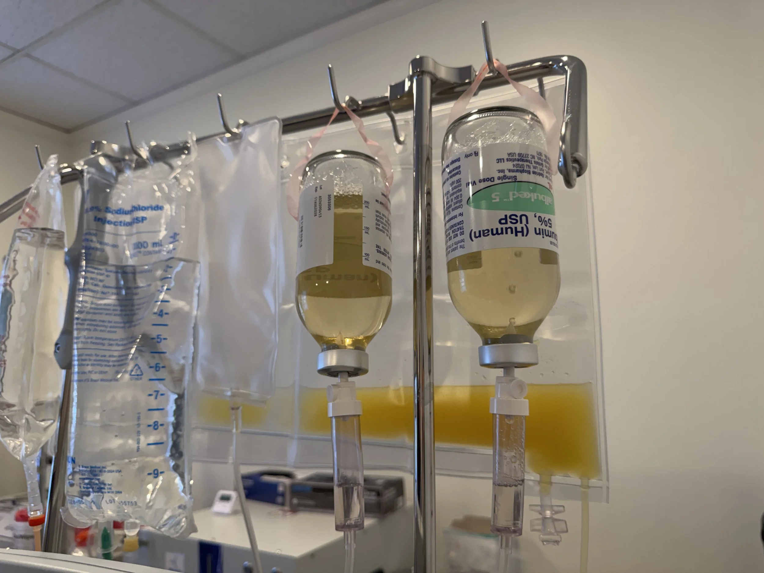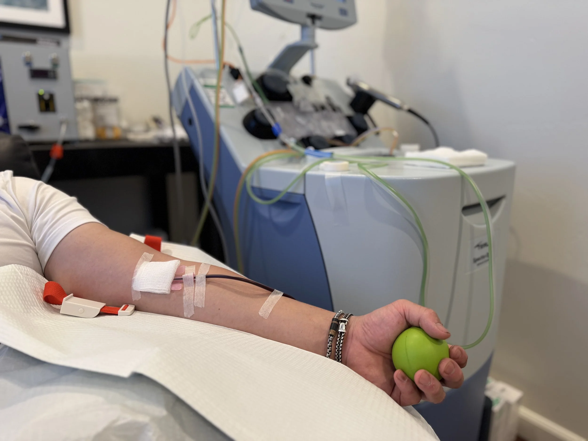 A medical-grade machine gently removes and replaces your plasma while returning your blood cells to your body. Sessions last 2 to 3 hours.